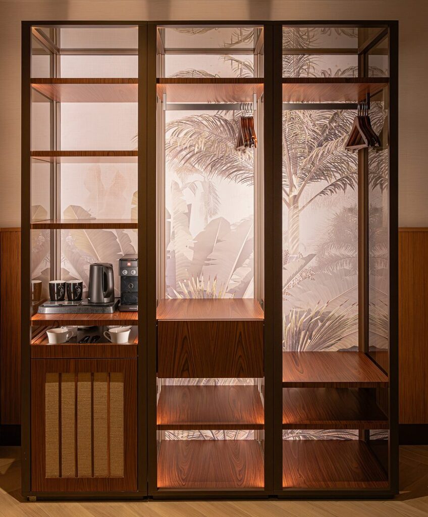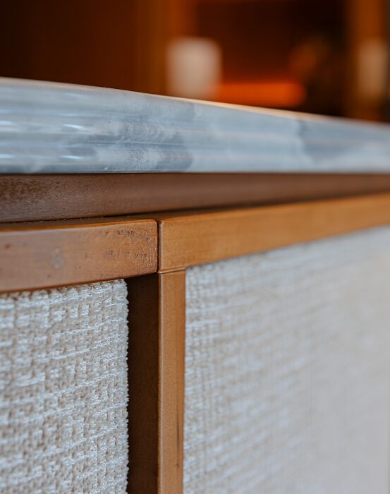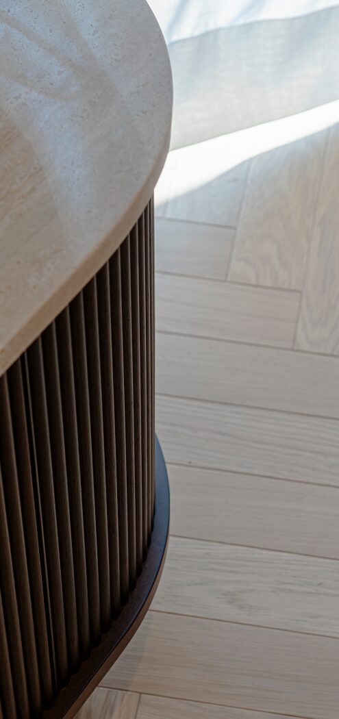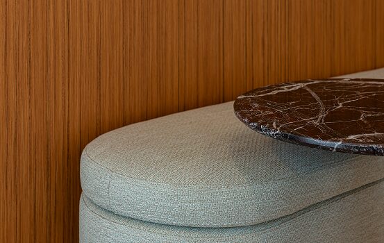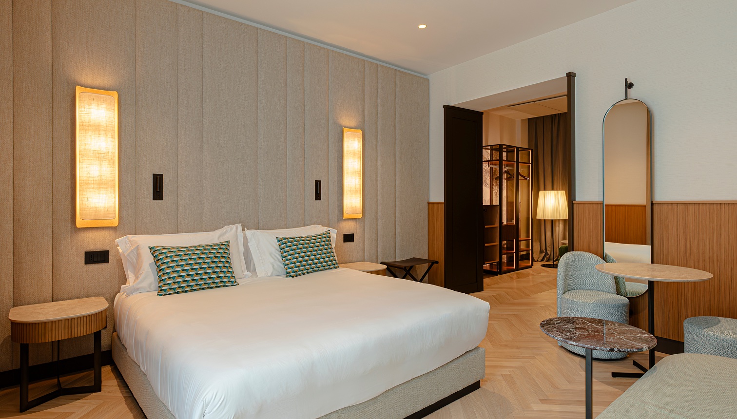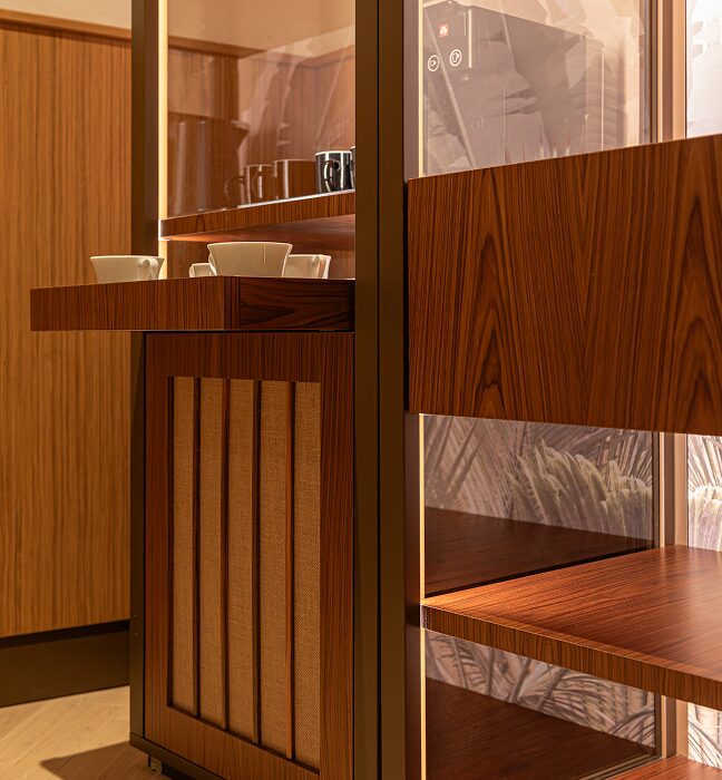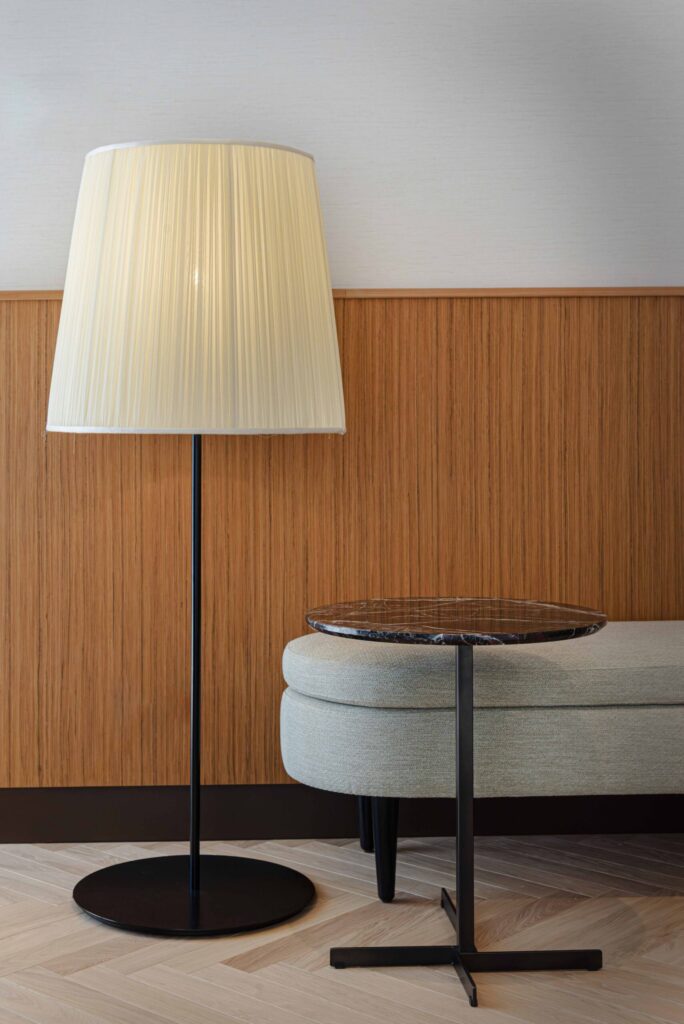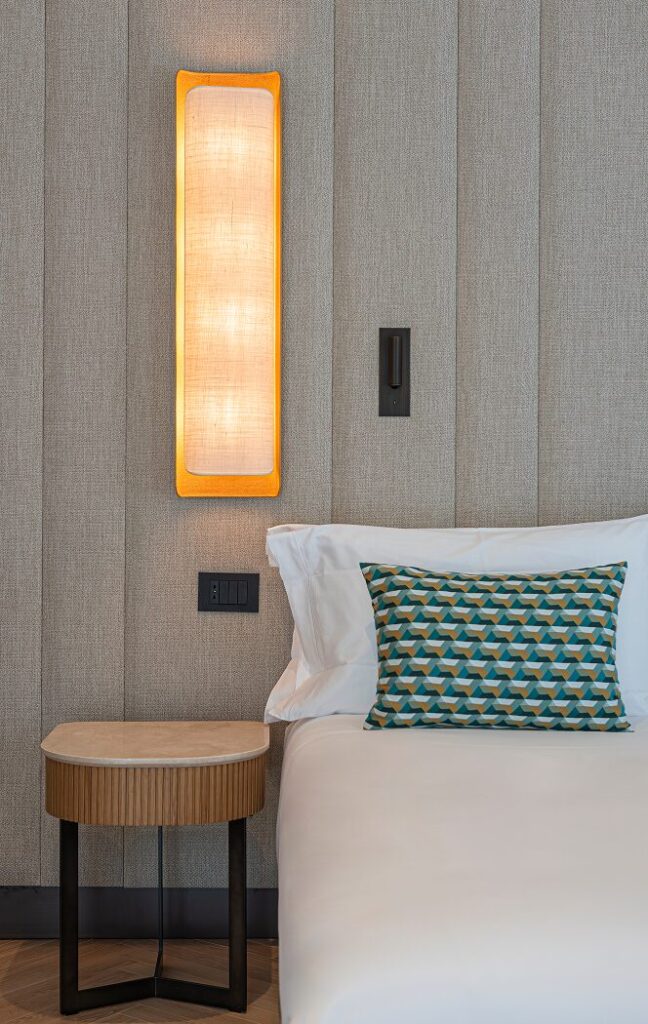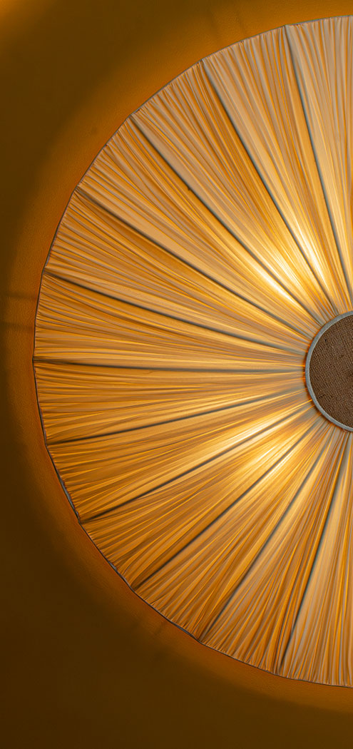 – Un’alternanza continua, tra linee morbide e nette, elementi concavi e convessi, tessuti plisée di chiffon e trame larghe di juta e lino, dove la luce naturale contribuisce a creare un’atmosfera rilassante e confortevole, in contrapposizione con la vivacità del tessuto urbano circostante.